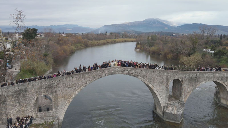 Ο Σεβασμιότατος Μητροπολίτης Άρτης κ. Καλλίνικος, απευθυνόμενος στο πλήθος, ανέφερε: «Ήρθαμε σήμερα εδώ στο Ιστορικό γεφύρι που ενώνει τις δυο όχθες του ποταμού, για να τιμήσουμε και να ψάλλουμε το «Εν Ιορδάνη βαπτιζομένου Σου Κύριε….» και όλοι ενωμένοι να δοξάσουμε τον Τριαδικό Θεό. Εύχομαι να δώσει ο Θεός την Ειρήνη και την Αγάπη στον κόσμο».