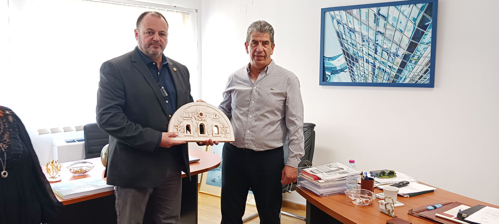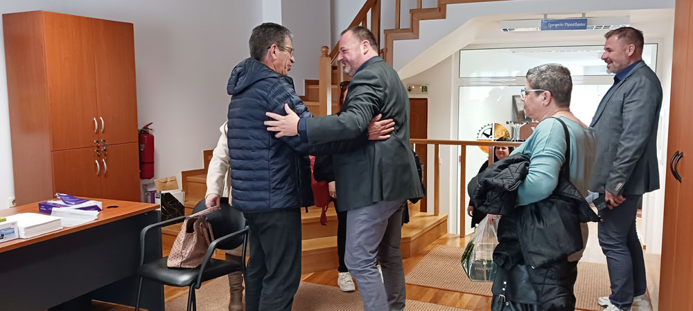 Σε εγκάρδιο κλίμα, ο κ. Χουλιάρας και ο κ. Φώτης υποδέχτηκαν στο Επιμελητήριο Άρτας τον Πρόεδρο του Εμποροεπαγγελματικού & Βιοτεχνικού Συλλόγου Τήνου, Ανδρέα Τσιμέκη, και μέλη του ΔΣ του συλλόγου. Η συγκίνηση ήταν προφανής και για τις δύο πλευρές, που με ενθουσιασμό και ειλικρινή χαρά αντάλλαξαν χειραψίες, καθώς όλα αυτά τα χρόνια από το 2014 (που πραγματοποιήθηκε η αδελφοποίηση) μέχρι σήμερα, η συνεργασία και οι φιλικές σχέσεις των δύο φορέων έχουν αναπτυχθεί σε μεγάλο βαθμό με θετικότατο αντίκτυπο για την Άρτα. Συγκεκριμένα, επιχειρήσεις της Άρτας προμηθεύουν με τοπικά και παραδοσιακά προϊόντα πληθώρα τοπικών επιχειρήσεων της Τήνου, αναδεικνύοντας τα ηπειρωτικά προϊόντα στη νησιώτικη τοπική αγορά.