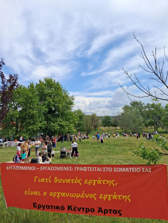 «Αναδείχτηκε πως οι δικές μας ανάγκες μπορούν να καλυφθούν μόνο με τον αγώνα μας, μόνο μέσα από τα σωματεία μπορούμε να παλέψουμε, να σχεδιάσουμε και να κερδίσουμε τη ζωή που μας αξίζει. Πώς για να εξασφαλίσουμε ελεύθερο ποιοτικό χρόνο για εμάς και τα παιδιά μας, πρέπει να χάσει η εργοδοσία χρόνο που μας απασχολεί», σημειώνει η Διοίκηση του Εργατικού Κέντρου Άρτας και προσθέτει: «Σε μια περίοδο που ο εργάσιμος χρόνος αυξάνεται, ανάλογα με τις ορέξεις της μεγαλοεργοδοσίας, ενώ υπάρχουν όλα τα επιτεύγματα της επιστήμης και της τεχνολογίας για να μειωθεί δραστικά με ταυτόχρονη αύξηση των μισθών για να καλύπτουμε τις σύγχρονες ανάγκες μας, για να κερδίσουμε εμείς πρέπει να χάσει το κεφάλαιο. Δυνατός εργάτης είναι ο οργανωμένος Εργάτης».