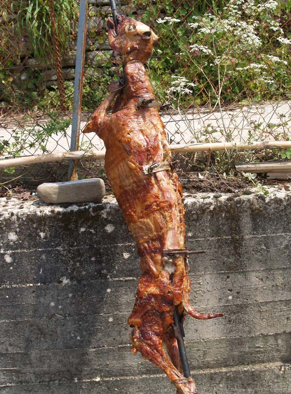 Είχαμαν έναν στου χουριό κι ουλουένα έκλιβι, δεν έβανι μέρα ανάμεσα! Είχι κι παρέα… Έψεναν ένα σφάγιου κάθι μέρα! Το κακόψεναν (το έψηναν όπως όπως) γλήγουρα, απ’ του φόβου. Να φάν’ τ’ απόξου (δηλ. τις ψητές πέτσες ουσιαστικά) κι τ’ άλλου στα σκ΄λιά. Ηύρισκαν τ΄ς κουκαλιές οι ν’κουκυραίοι».