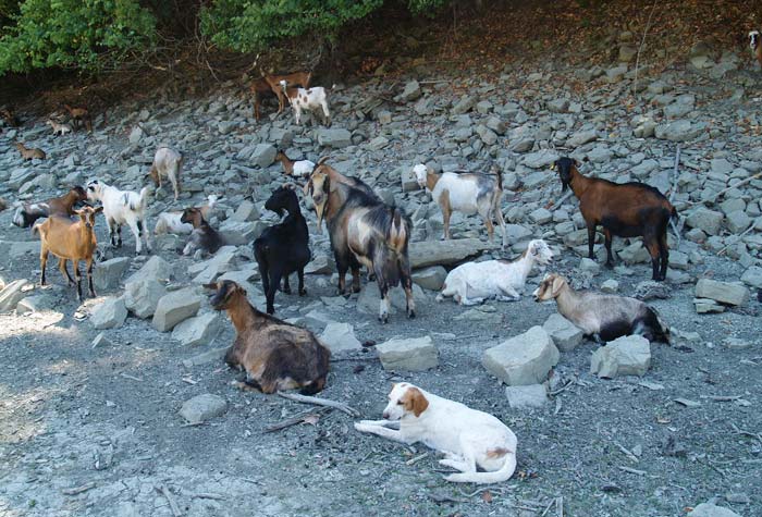 Φυσικά, μου είχε δώσει τις απαραίτητες οδηγίες: «Μη σκιάζεσαι! Αλυχτάν’ (γαβγίζουν) τα σκ’λιά, αλλά δε δαγκώνουν. Θα τα μαυλίσουμι (φωνάξουμε καθησυχάζοντας) ιμείς. Μαναχά να μη ζυγώ’εις στου κουπάδι, γιατί θα χυμήσουν! Να έρθ’ς μεσημεράκι, τότι π’ πιάνουν του στάλου τα γίδια (πηγαίνουν στο σημείο όπου ξεκουράζονται), γιατί τ’ απόγιμα τα ρ’πάου (ριπάω: κατευθύνω) στου πουτάμι, για να τα πουτίσου. Κι δεν έχει νιρό…. Στράγγ’σαν (στέρεψαν) κι τα ρέματα φέτου!».