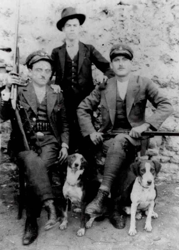Έκλιβαν τα γίδια κι τα μάζουναν μπ’λούκι, ένας μι του τ’φέκι μπρουστά κι οι άλλοι πίσου σαλάγαγαν τα γίδια, κι είχαν κι αυτοίνοι του χέρι στ’ σκαντάλη!