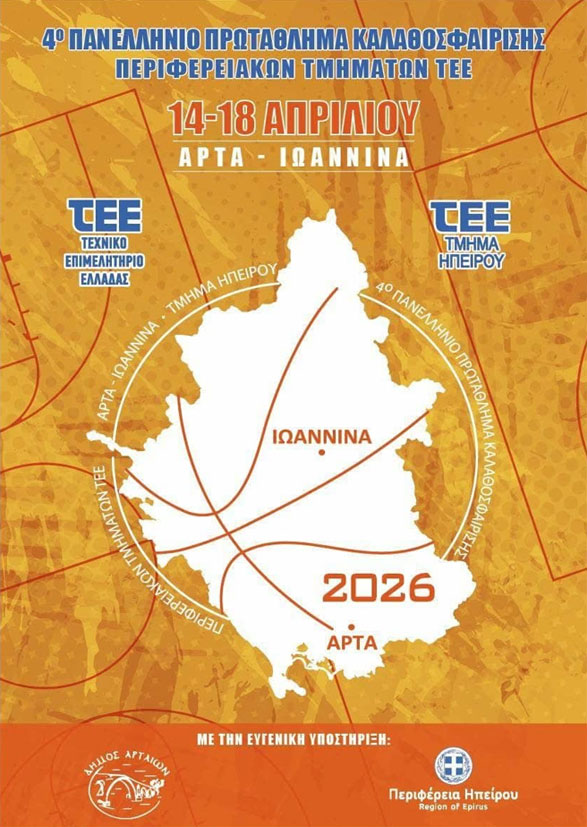 Το Τεχνικό Επιμελητήριο Ελλάδας προσκαλεί στο 4ο Πανελλήνιο Πρωτάθλημα Καλαθοσφαίρισης Περιφερειακών Τμημάτων ΤΕΕ, που θα πραγματοποιηθεί από 14 έως 18 Απριλίου 2026 σε Άρτα και Ιωάννινα.